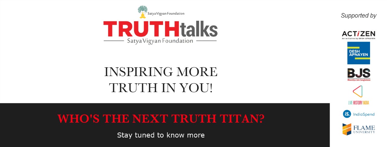 Satya Vigyan Foundation, part of Desh Apnayen, launched TRUTHtalks in August 2020, with an online talk by Mr. Narayana Murthy followed by a Q&A session. The series of talks by luminaries from diverse fields aims to mainstream the discussion and practice of Truth, to inspire people to raise the truth quotient in their lives and make our society more happy, trustworthy and productive.