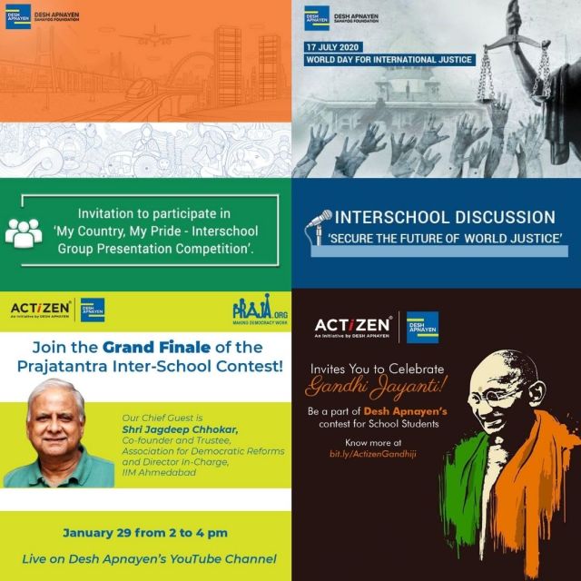 The year 2020 started on a high for us owing to the great response we received for the two-stage ACTIZEN Contest from students across India. The COVID pandemic forced schools to close their doors and yet, many of our partner schools started or renewed the Desh Apnayen ACTIZENS’ Club, online.
