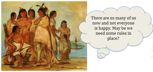 But as there got to be more people, they began to live in larger groups. It became difficult to decide what to do without anybody in charge. At this time, probably during the New Stone Age, people first began to have governments. Basically a government is a way for a large group of people to make decisions. Because some places got crowded sooner than other places, people began to have governments sooner in some places than in others.