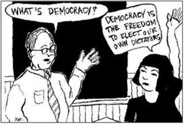 In a direct democracy, there are no representatives. Citizens are directly involved in the day-to-day work of governing the country. Citizens might be required to participate in law making or act as judges, for example. The best example of this was in the ancient Greek city-state called Athens. Most modern countries are too large for a direct democracy to work.
